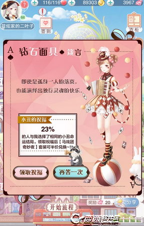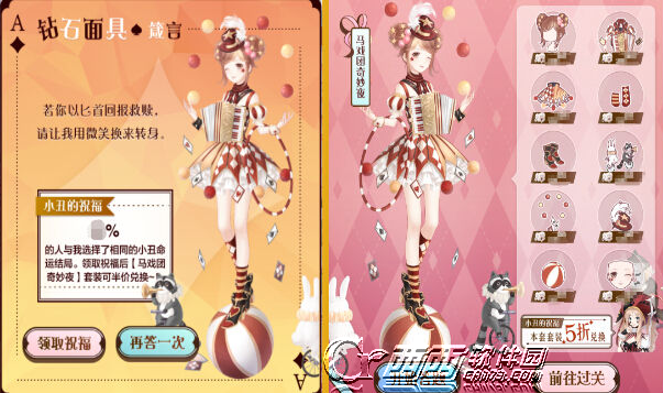 想要兑换套装,我们还是要通过小丑的考验。每人每天在每个关卡有5次免费考验的次数,在愚人节活动关卡中过关是不消耗体力的,完成小丑的任务要求,才能够得到本期活动道具——小丑的钻石面具,可以用于兑换套装。
