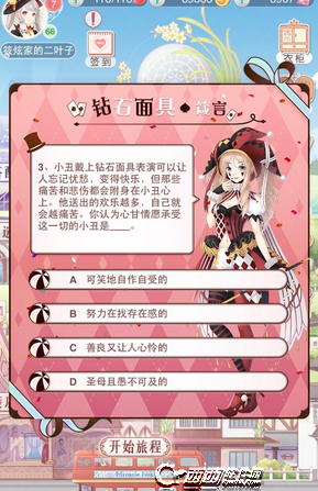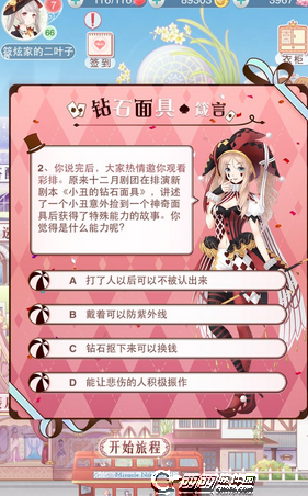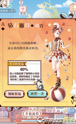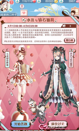 本次愚人节活动定于2016年4月1日维护后开启,在4月4日23:59之前在苹果联邦著名的星光大剧院巨型。在巡演开启之前,建议各位先找小丑测算一下你的【钻石箴言】,在领取小丑的祝福之后,就能够获得某款套装兑换半价的特别优惠哦!