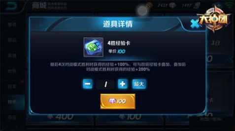 日经验卡:一天24小时内所有对战模式获得经验+100%,可与胜利经验卡叠加使用,叠加后的对战模式获得的经验+200%。