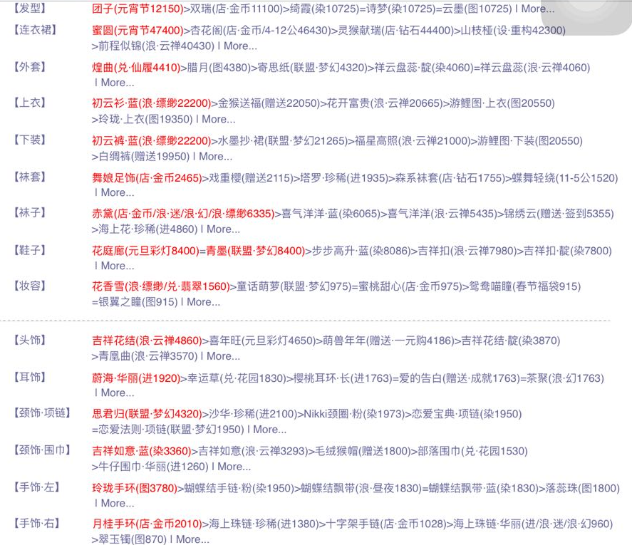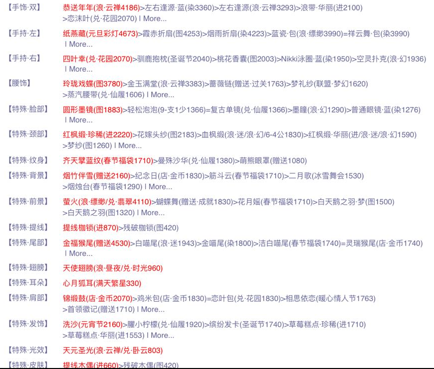 肩 部:水纱少灵「公」> 锦缎鼓「氪」> 恋叶包「兑」> 鸡米包「金」