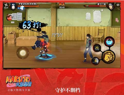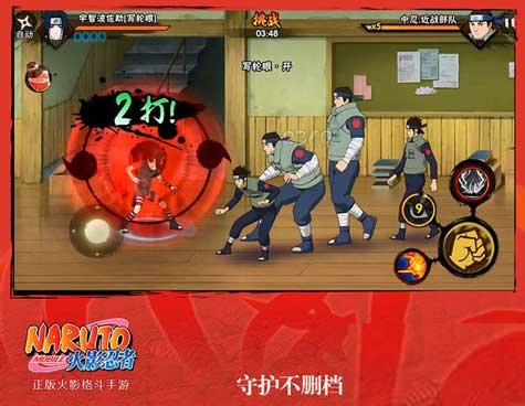 开启写轮眼,强化普通攻击与“火遁·豪火球”技能。如果在写轮眼状态下,该技能变化为“炎阵脚”,向前方发起连续的5次连踢攻击。