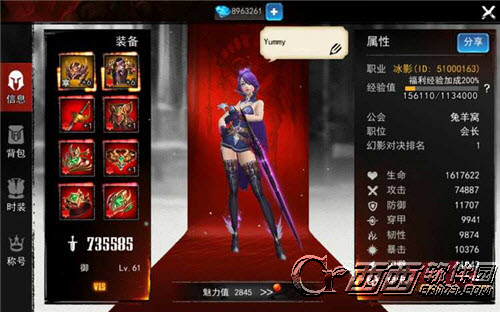 因为等级高,数据更加一目了然,命中是冰影最大的缺陷。毕竟是远距离输出型,要是命中高还得了。最高的属性是防御,不过这个可以靠装备堆起来无视无视(打脸了吧)。