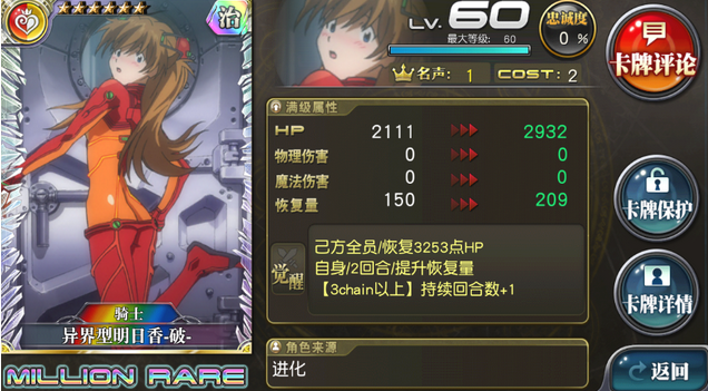 乖离性百万亚瑟王在最新一期的联动中,确认与EVA进行联动,那么在最新一期的EVA的联动活动中,能够看到有着最新的3D画面,这次的BOSS都是3D的哦,还有新的场景与新的看板娘,话说这次的看板娘是小编的女神明日香呢,而喜欢绫波丽女神的小伙伴也不要着急,虽然没有看板娘,但是有卡牌啊!我们就一起来看一下这期与EVA联动的具体内容吧。