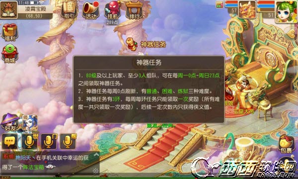 任务奖励:可以获得经验、银币及神器积分奖励