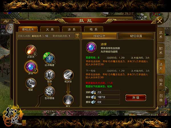 火球术到达6级左右,开始主升级冰球。单体攻击带有的魔法攻击力较高,刷怪更快。