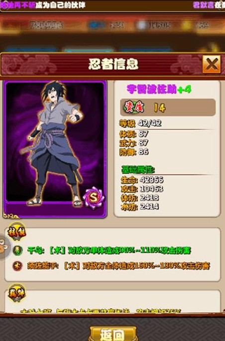 羁绊:(宇智波佐助)35%攻击+(宇智波止水)30%攻击+(干柿鬼鲛)30%生命+(志村团藏)30%攻击