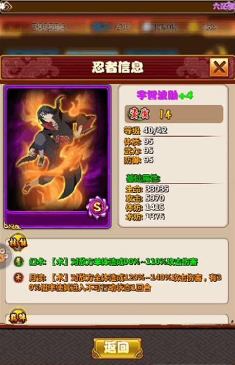 宇智波鼬(95%攻击30%生命羁绊)群体术攻30%几率令对手不可行动一回合