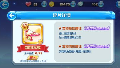 这款宝物是专门为了滑翔系角色在多人对战中使用的,什么是滑翔系角色呢?像魔女娜娜、暗夜宝贝这类角色肯定是滑翔系了,还有齐天大圣、唐小僧、吸血伯爵这类三跳滑翔角色也是滑翔系角色呢!目前,多人对战主要由唐小僧、吸血伯爵主导,这两款既然都是滑翔系的话,肯定适用这款宝物。增加了最大速度之后,这几款角色简直是要飞啊。现在大家可以通过锦标赛活动的神秘商店入手这款宝物,总共需要1000个活动道具才可以兑换相应的奖励,相当于要获胜100场比赛。虽然说每天没有参赛场次的限制,但是100场胜场也是要累得够呛,手残的小伙伴恐怕要哭了。在这次锦标赛活动中,除了翱翔赤翼以外,还有多款新品同步上架,包括坐骑-冰魄狼王、精灵-寿司仔,还有一款吸血伯爵的S级宝物金身袈裟,如果精力有限,肯定选择其中一款宝物兑换即可。