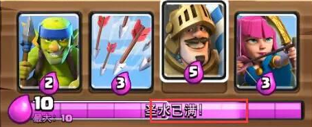 第一步:双方开战之后,等待圣水增长到10格水平,抓住时间节点,不要急于下兵。