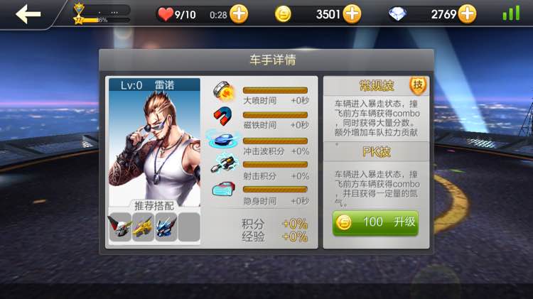车辆进入暴走状态,撞飞前方车辆获得combo,并且获得一定量的氮气。