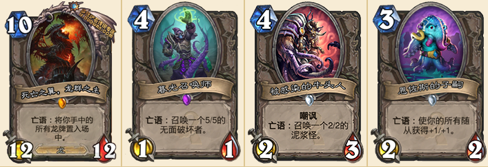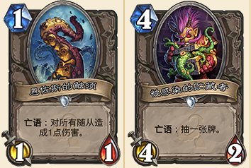 麻风侏儒、巨型蟾蜍、战利品贮藏者、血法师、麦田傀儡、憎恶、阿努比斯哨兵、凯恩·血蹄、希尔瓦娜斯、摇摆的普罗米、冰吼。