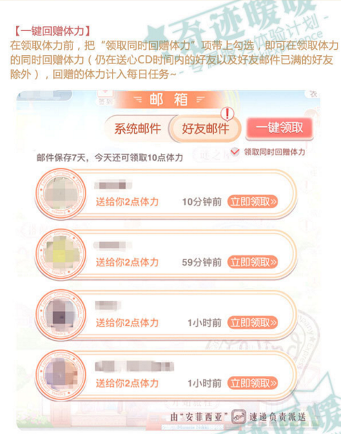 好友送心可以一键领取以及一键回赠,再也不会点到手抽筋了。