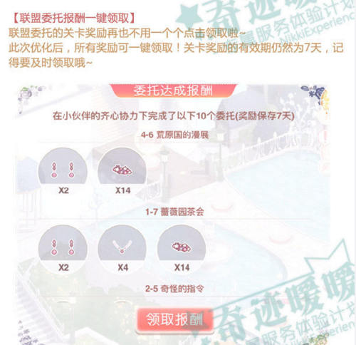 奇迹暖暖即将更新新的剧情章节第十三章以及一系列新套装来袭,除此之外还有一个相当振奋的好消息,那就是支持一键领取体力和联盟委托奖励一键领取啦!下面和西西一起来看看吧!
