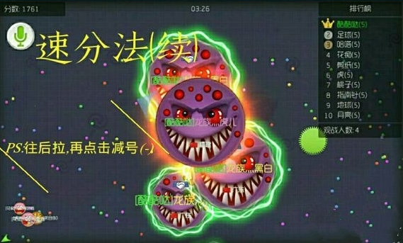 在团队模式中,当你的体重大于你的球友分身,你分出来的分身体重也大于球友,这时点击减号,往后拉(不使用往后拉前面分的身会被敌球所吃掉,达不到配合)本技术教程完毕