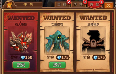 在任务栏中,有个专门的赏金页签,讨伐对应BOSS即可领取海量钻石,点击接受后会引导你进入指定的副本,不过一般都是精英本,所以建议提升了战力后再去完成