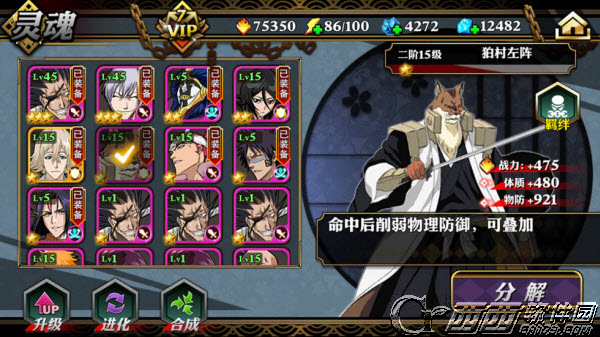 大家可以看到,狗狗队长(狛村左阵外号!)的效果是命中后削弱物理防御,可叠加,这个我理解为,不管你技能还是平砍,只要打中了,就叠加一层减物理防御的BUFF,那么对于前期没什么灵力攻击斩魄刀的玩家来说,是很适合的,而且入手难度也是副本产出!进阶也是很容易的,搭配更木剑八的话,没有什么比这队组合更合适物理流了!