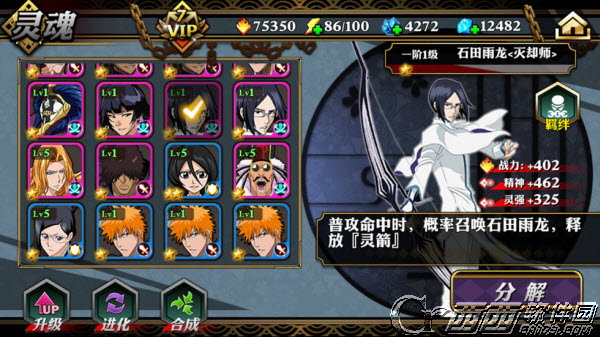 在手游中,灵魂就是《死神》世界里的角色,每带领一个角色就能够获得该角色提供的基础能力。灵魂共有3种分类,分别为:攻击、防御、增强,携带不同的分类的灵魂可以获得对应的属性加成,玩家可以根据自己的喜好重点收集和培养与斩魄刀相辅相成的灵魂。携带尽可能多的灵魂或稀有灵魂,可以迅速提升战斗实力,帮助你顺利战胜各类敌人!轻松赢得战斗胜利!