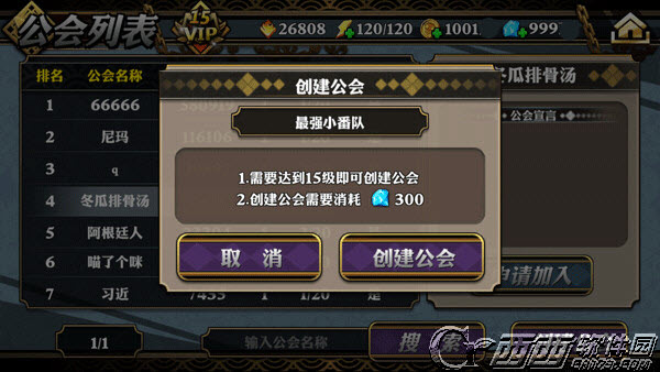 创建公会:消耗300钻石即可创建公会,玩家可自定义公会名。