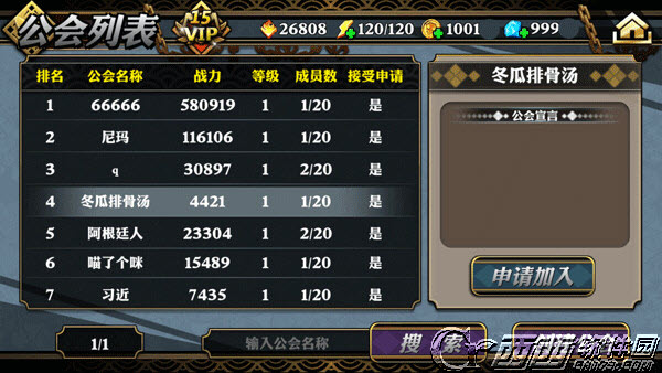 加入公会:其他玩家可已在公会列表中查看到所有公会,可通过输入公会名称搜索查询申请加入公会,经公会会长和副会长批准后,进入公会。