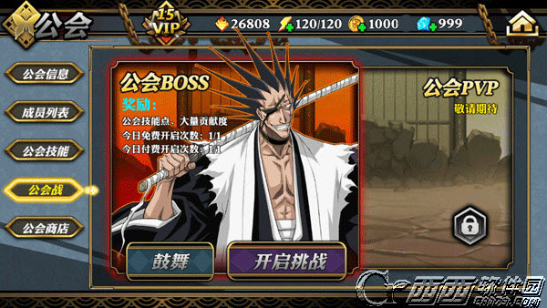 进入公会后,玩家可在公会战一栏处挑战公会BOSS。