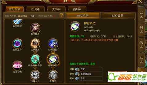 骷髅弓手这个技能在初期简直就是神技,玩家召唤出一个弓手将自身的魔攻按照相应的比例增加到宝宝身上,宝宝的打击范围是3乘3的,也就是说宝宝可以同时打击三个敌人,骷髅弓手的等级越高给敌人造成的伤害就越高所以在初期这个技能是要有多少加多少的。