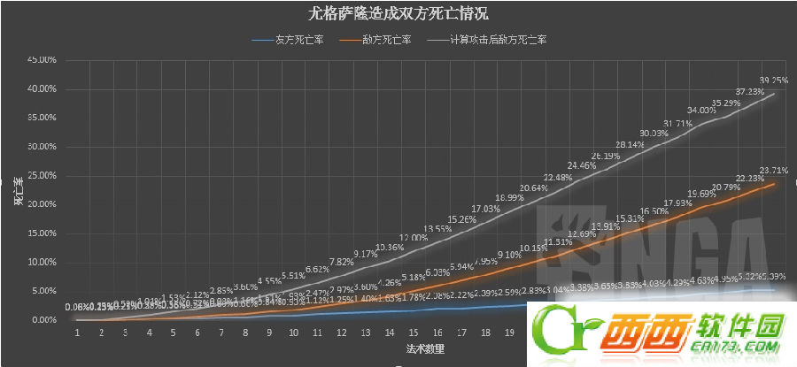 然后我们再来看看尤格萨隆对双方英雄的伤害情况,这里我们分别统计平均掉血和猝死率(初始血量双方都取10点)。