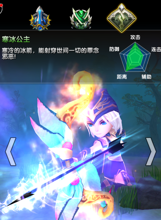 远程武器攻击,并且属性点涵盖防御、攻击、连击。