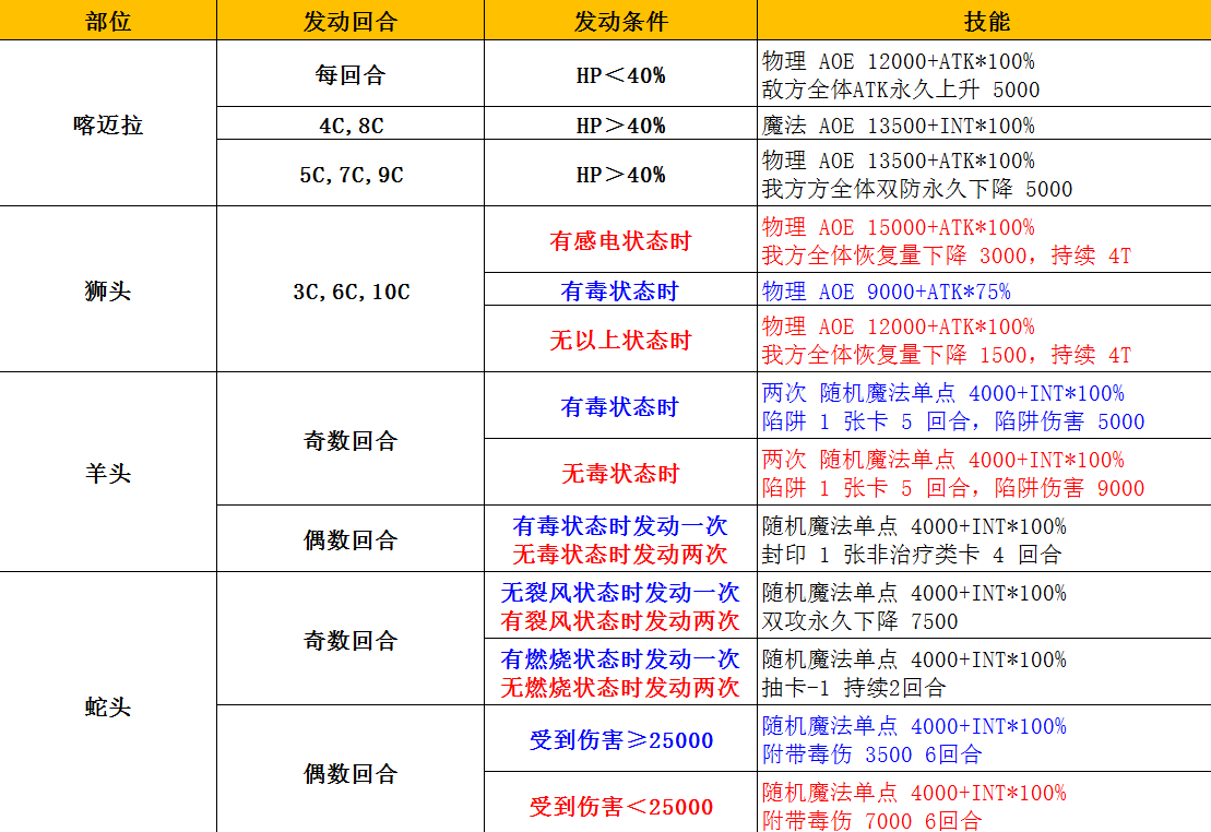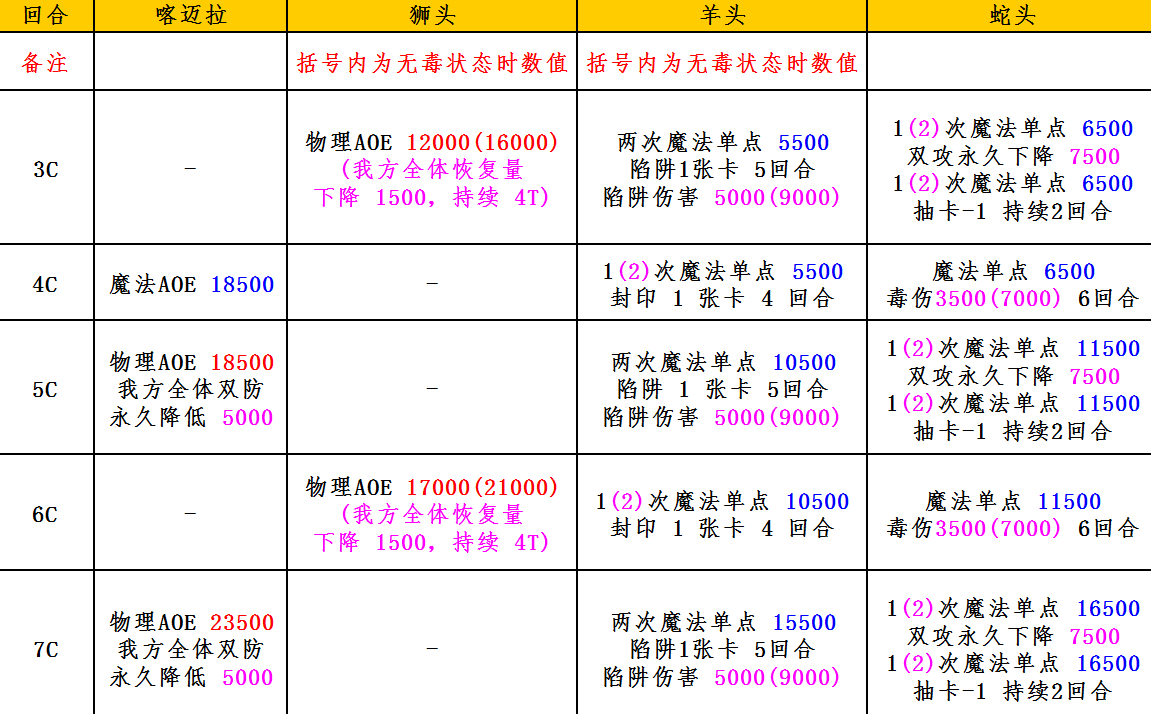 5C 本体物理AOE,且降低我方双防,羊头陷阱单点,蛇头减攻减抽单点