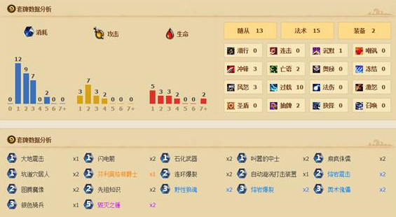 为大家带来的是打脸萨卡组,相比其他的打脸萨卡组我带了2张奥术傀儡替换了狼骑兵,这张卡虽然有副作用但是威胁巨大,3费4伤经常是保证我们斩杀的手段,前期上场对面也是必解,配上叫嚣能解熊德,打小德尤其好用。大地震击带了一张,留给淤泥,大树,佛丁。2张有点卡手,毁灭锤2张,这是我们爆发的根本,也是这套牌的核心,配上石化武器就是一轮10点的输出,打在对面脸上基本就奠定了胜局,还可以解对面的关键怪。
