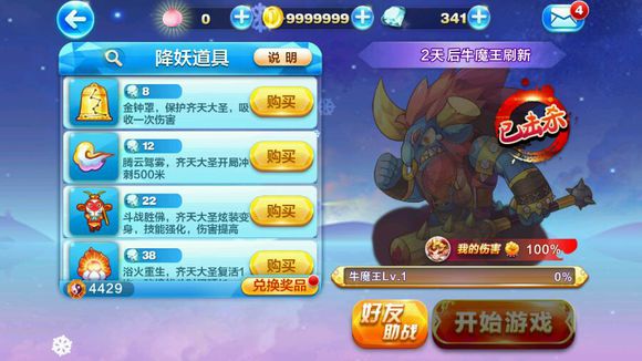 3.等级高了,先用大号买冲刺道具打一次,剩下的用小号自带的三个桃子打死~ 一般把小号升到四级牛就不升了。