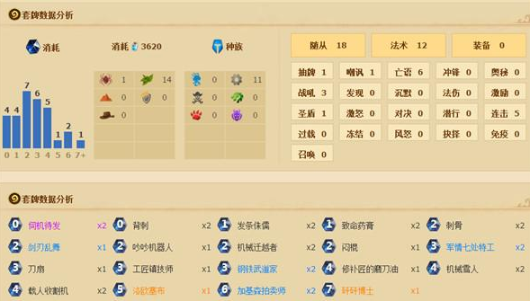 但是,在构筑这套卡的过程中,考虑最多的是,究竟带哪些机械最合适,首先,考虑到核心是机械零件给拍卖师刷牌,同时提升机械的战场能力,辅以法术清场,所以,随从数量与法术数量的比例尤其重要,法术太多,很容易卡手,机械太多,强度不够,所以最后采用的是 2个发条侏儒,2个机械雪人,1个镇剂师的零件配备,加上2个武道家,2个收割机,2个跃迁,1个吵吵的随从配置,法术和随从的比例是12:18(2:3)经过反复测试,从没有卡手过,毕竟整体曲线平滑,随从数量适中,而且等到拍卖师来的时候,手里通常有两到三个零件,刷牌很带感,最后附加一套刀油乱舞,可以维持有效的斩杀能力。