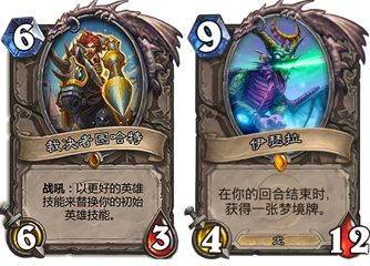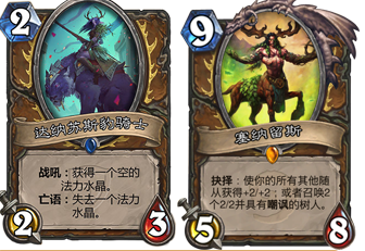 绝命乱斗X2:在这个环境中2张绝命乱斗是非常有用的,它可以配合希尔瓦娜斯·风行者完美清场,如果有索瑞森大帝的减费效果同时使用更佳,对面也有风行者的话就需要另谈了。