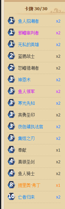 同时这套牌的造价比较低,比较关键的就是2张紫卡13小鱼人。