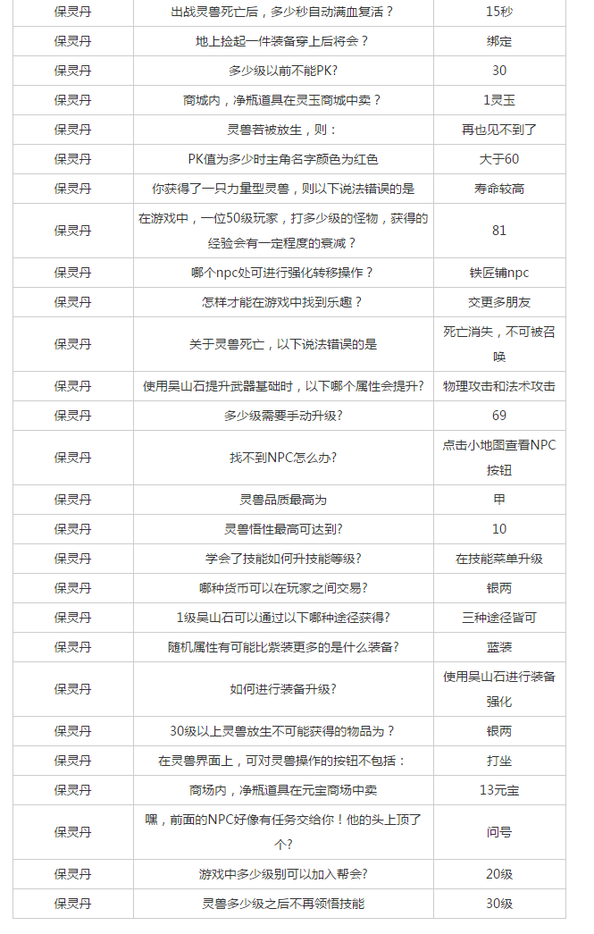 倩女幽魂手游是有端游原班人马倾力打造,沿袭倩女品牌极致唯美画风与人设,玩法出众而吸引了大批的玩家。倩女幽魂手游有一个保灵丹答题活动,玩家答对问题可以获得非常不错的奖励。下面给大家带来倩女幽魂手游保灵丹答案汇总。