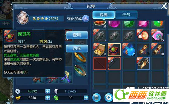 每天可以使用三个保灵丹~答对题目有90多万经验~答错题目只有60万经验,每天都要记得吃满三个哦~快速升级的妙招一般人我不告诉他!