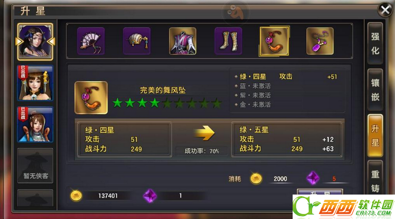 关于装备强化,平民新手建议先一键强化主角,然后是攻击侠客,最后才是治疗。而攻击侠客每次打BOSS可以先召唤出来打小怪和在BOSS的时候放大招然后根据情况来召唤治疗侠客。特别是打门派师姐的那个副本,新手一定要加一次血才可以3星