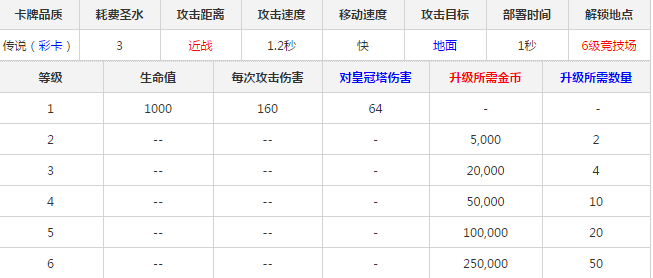 掘地矿工,部队,3费,传说卡,A6解锁,类似于哥布林飞筒,可以直接通过挖地道,出现在本方或者对方的任意战斗区域,例如直接敲对方的塔。
