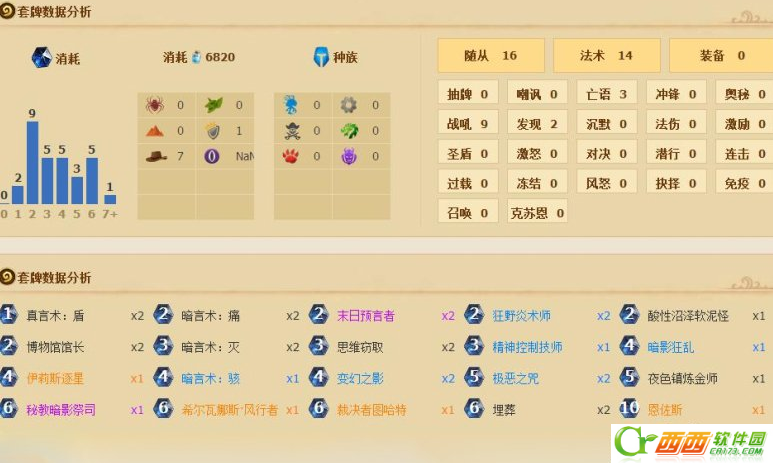 2、 对战术士,就当动物园打,起手找末日,炎术士,极恶之咒,对面场攻不高的时候不用急着交解,可以等对面多铺点一起清了。注:在手里没有灭的时候防海巨人,对面要是能下海巨人了,那就果断解场!如果对面是个宇宙术(目前都是克苏恩体系),基本上是0-10开!只能祈祷发牌员制裁对手!
