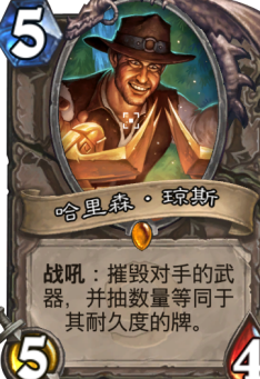 哈里森琼斯:用会长的话说,看当时的天梯环境,遇到战士和盗贼多的情况下,哈里森还是很有用的,没有的玩家也可以换成爆刀或者是苍老师都是可以的。