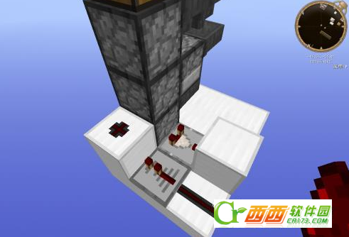 这样最下面的投掷器的物品就可以上传一格了,也就不会产生无限脉冲了,然而上面放了一个红石,触发了第二个投掷器,那么烧好了的东西就到了第三格了,也就是说再触发第三格投掷器就可以到箱子里面了。那么接下来我们就来让第三个触发,我们首先这样放: