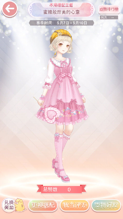 蜜糖般甜美的心意看主题就是和本次相关的活动登陆送套装【甜蜜阳光】而出的,估计大家也是猜到了吧,但是目前为止我们领取到的部件太少,只有3-4个,这要怎么搭配蜜糖般甜美的心意呢?这就需要大家好好利用手里的部件来搭配其他的服饰了,让搭配看起来可爱、活泼、清纯,如同蜜糖一样的甜蜜,最好是以粉色调为主,这样看起来更甜蜜哦。