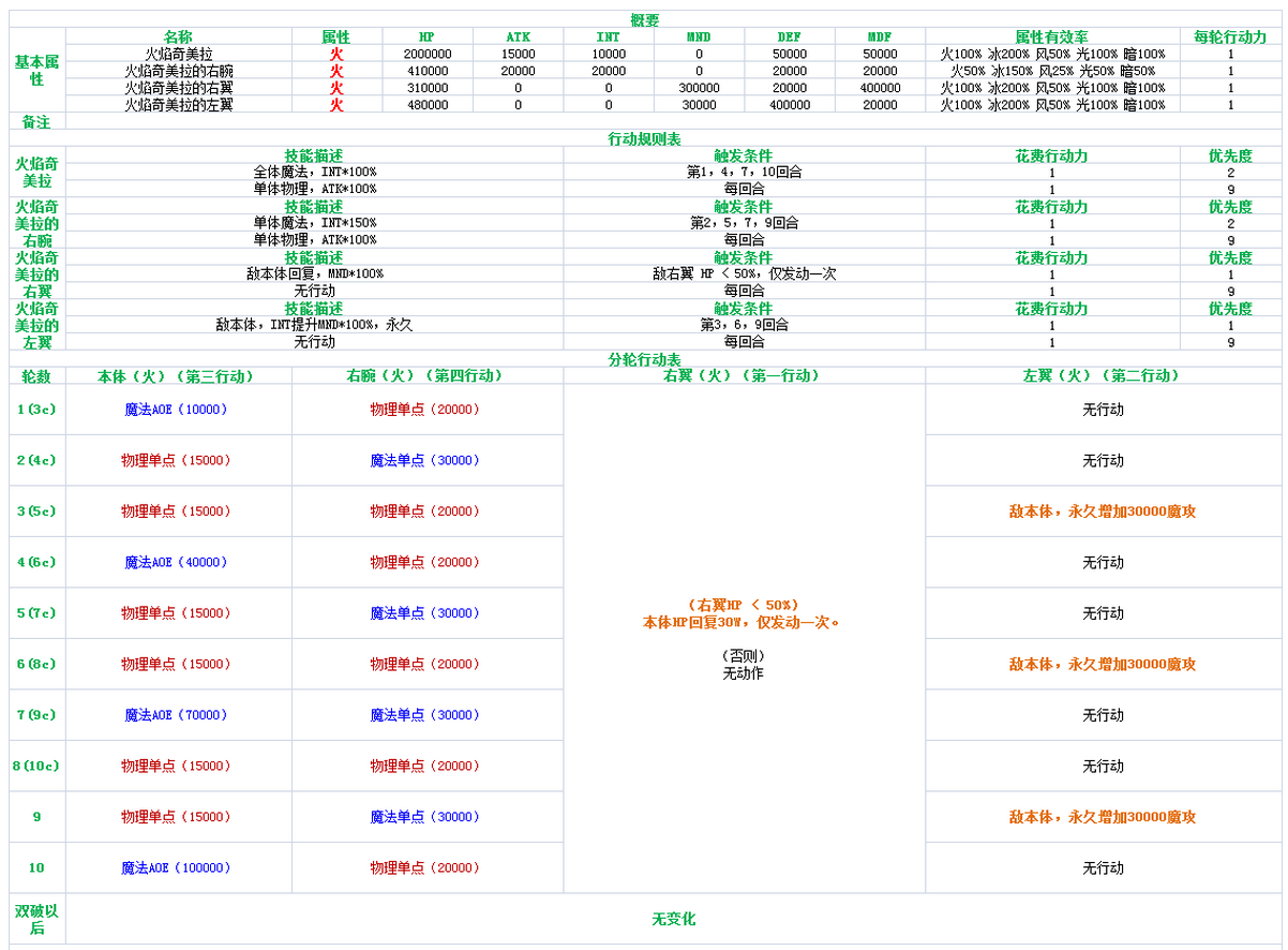 总之本体和爪子规规矩矩的每回合一发攻击,左翼每3回合给本体加一次魔攻,右翼如果爆破回合没打死会为本体回血,就是这样了!