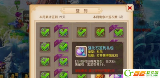 如果说帮战还多多少少要看点运气,那么每日签到就是目前最稳定的强化石收入来源了。只要你登陆游戏,就能获得每日签到中所提供的奖励。如果你能够稍微在游戏中充值一番,那么更能获得补签机会,让你不错过任何一份好礼!