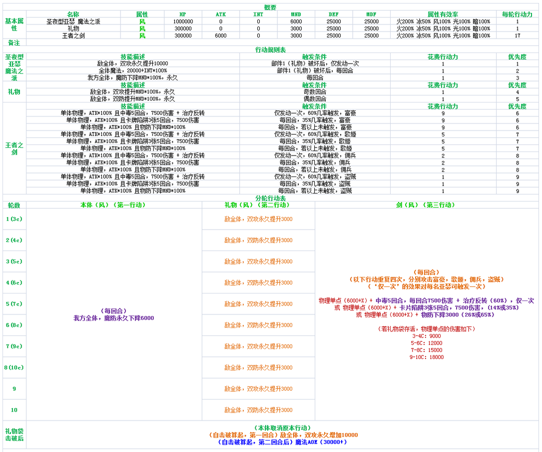 礼物袋每回合会为敌方全体增加3000双攻(奇数回合)或3000双防(偶数回合)……明明是礼物为啥只送给自己啊。麻烦的是剑。