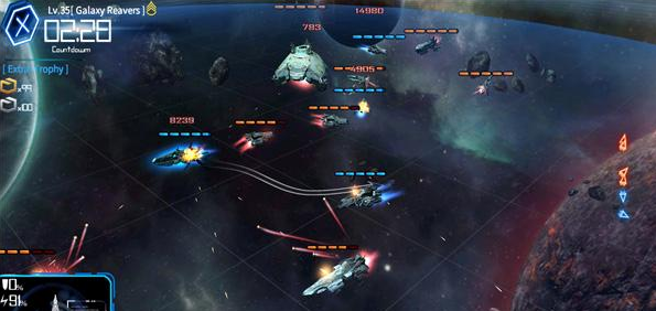 作为一款即时策略类游戏(RTS),《银河掠夺者》的受众偏向硬核玩家群体(hardcore),玩法上紧贴触控设备以划线的方式进行呈现,并且包含了走位、集火(群殴)、绕背(跳到或绕到敌人的背后进行攻击)等灵活富有策略的操控,从预告片表现的激战场面来看,密密麻麻的战舰火力全开,场面蔚为壮观,丝毫不逊于“星球大战”的激烈程度。