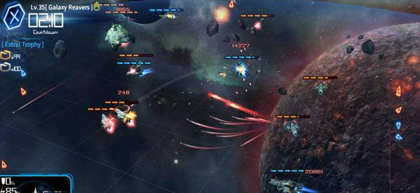 《世界2》以高精度的 3D 建模构造一个巨型怪兽横行的世界,这种气场全开的制作规模和野心令国内玩家纷纷赞叹不已。而《银河掠夺者》依然延续了 OXON 的“强制作”气势,游戏背景“冲出地球”,以发生在宇宙殖民星球的资源掠夺争端为主线,辅以极具冲击力的 3D 画面和恢弘的大战场面,俨然是 3A 级制作的水准。