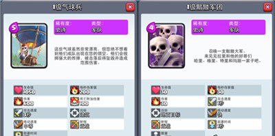 气球兵拥有极高效率的推塔能力,在目前版本虽然有电磁炮这样不符合常理的卡存在,但是气球兵的强度依然不容小视,毕竟这张卡只攻击建筑物。而骷髅军团则是另一个比较有特色的卡,上面说过可以替换成骷髅兵、哥布林或者矿工,原因是这张卡多半是负责给气球兵当垫背的,吸引防御塔和对面卡的攻击,让气球兵能够安稳地过去是这张卡的核心功用。