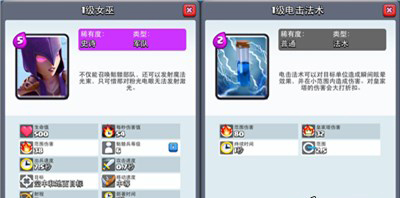 女巫是许多人低估了的一张卡,低估的是女巫这张卡能带来的价值和输出能力,在目标被冰冻的情况下同等级的女巫能轻松吃下一个皮卡超人绝对不是在开玩笑,女巫在目标无法伤害到骷髅和自身的情况下可以爆发出无法理解的输出能力。电击法术主要用于增加目标的晕眩时间,冰冻法术的等级提升是非常麻烦的一件事,4级的冰冻和1级的冰冻也仅仅延长了0.9秒的持续时间,而一个电击法术则能再延长1秒,而且这张卡在防御哥布林飞桶和亡灵大军的时候有奇效,怎么想都不算亏的一张万能牌。