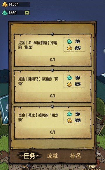 你能看到的是每个任务完成只有20钻石的奖励,但你有没有发现,每次任务的刷新是匹配你当前所到达最高楼层的?这意味着,如果你在某十层阶段暂时不下楼,每次进洞完成任务交了以后重新刷出的还是当前楼层的任务。再告诉你一条绝密规则:每个十层阶段,最多能完成的任务个数是35。比如,你一直在1-10层刷任务不下楼,最多能完成35个1-10层的任务,接下来刷出的任务就是10-20层的任务了。