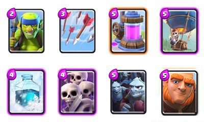 对阵房子流,用收集器存水,你的左边塔防守不掉的情况下,进攻右塔。 哥布林投矛手中间放,能解4个黄毛剩1个。房子流是慢节奏的消耗战,所以收集器是核心,收集器打房子流很好用。